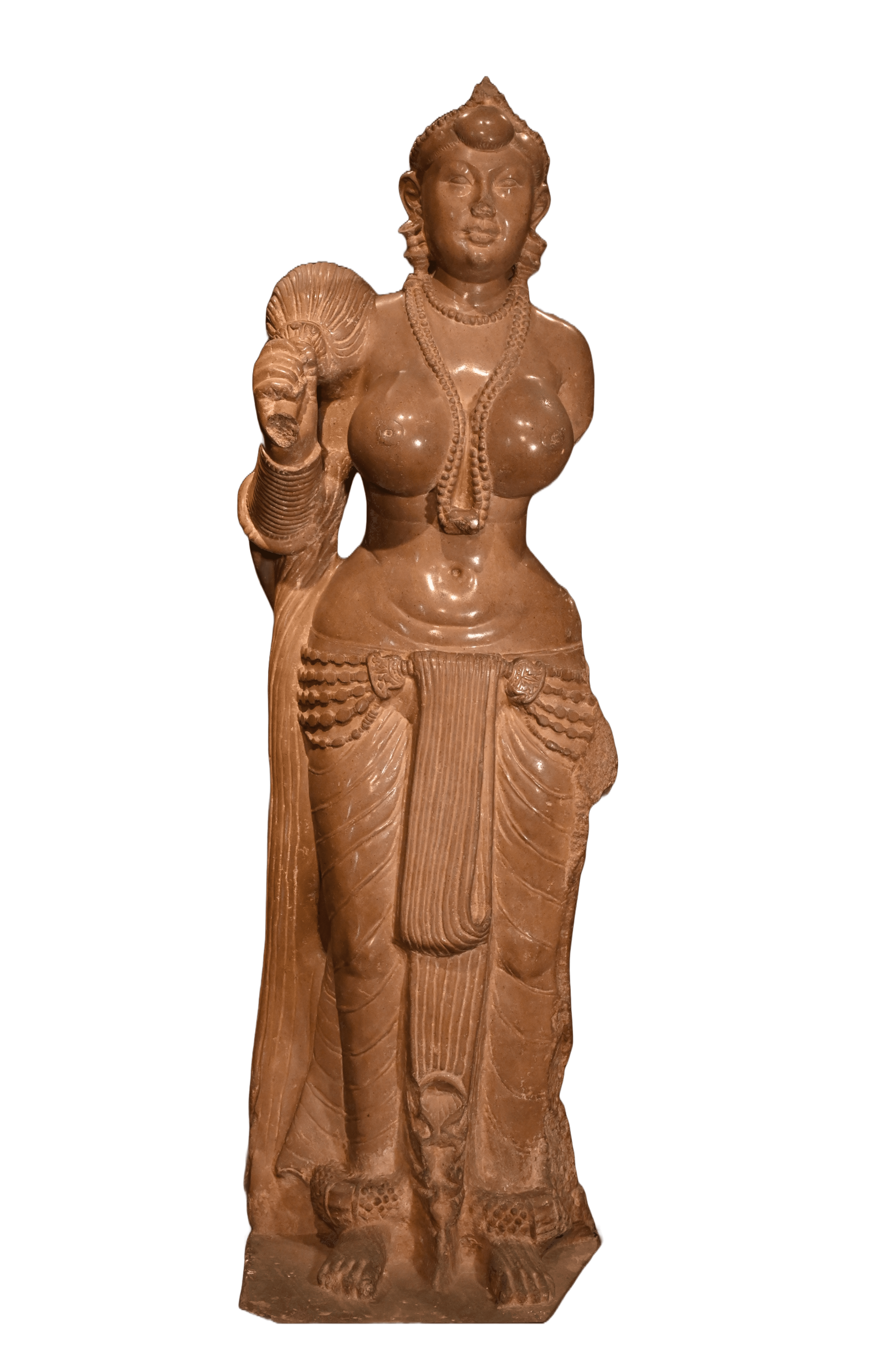 A confluence of royalty, culture and learning, the Didar Ganj Yakshi epitomises the beauty of classical Indian sculpture. 5 feet, 2 inches tall, this statue made of Chunar sandstone was discovered in 1917, the same year as the official establishment of the Patna Museum. In a letter to the Honorable E.H.S. Walsh who was then the Commissioner of Patna, the credit for the discovery of the statue was given to a Ghulam Rasul, who happened upon it on the muddy banks of the Ganges at Didarganj in Patna, Bihar. It is believed that what he saw was the base of the statue, which on further discovery, led to finding the magnificent sculpture entombed in the muddy depths of the bank. However, a more popular if somewhat romantic tale of the discovery of the Yakshi is one which ties back to a confidential report filed by a police inspector on 20th October, 1917. The report mentions a slab sticking out of the Earth on the banks of the Ganges in Didarganj on which the dhobis or washer men would often wash their clothes. One day a snake appeared on the bank and as the villagers tried to chase it away it slithered down a hole near the slab. They began to dig around the area, a result of which was the serendipitous discovery of the Didarganj Yakshi. It has now found a permanent home in the Bihar Museum and epitomizes not just the aesthetic beauty of Indian sculpture but gives us an insightful reading of the feminine power in India.