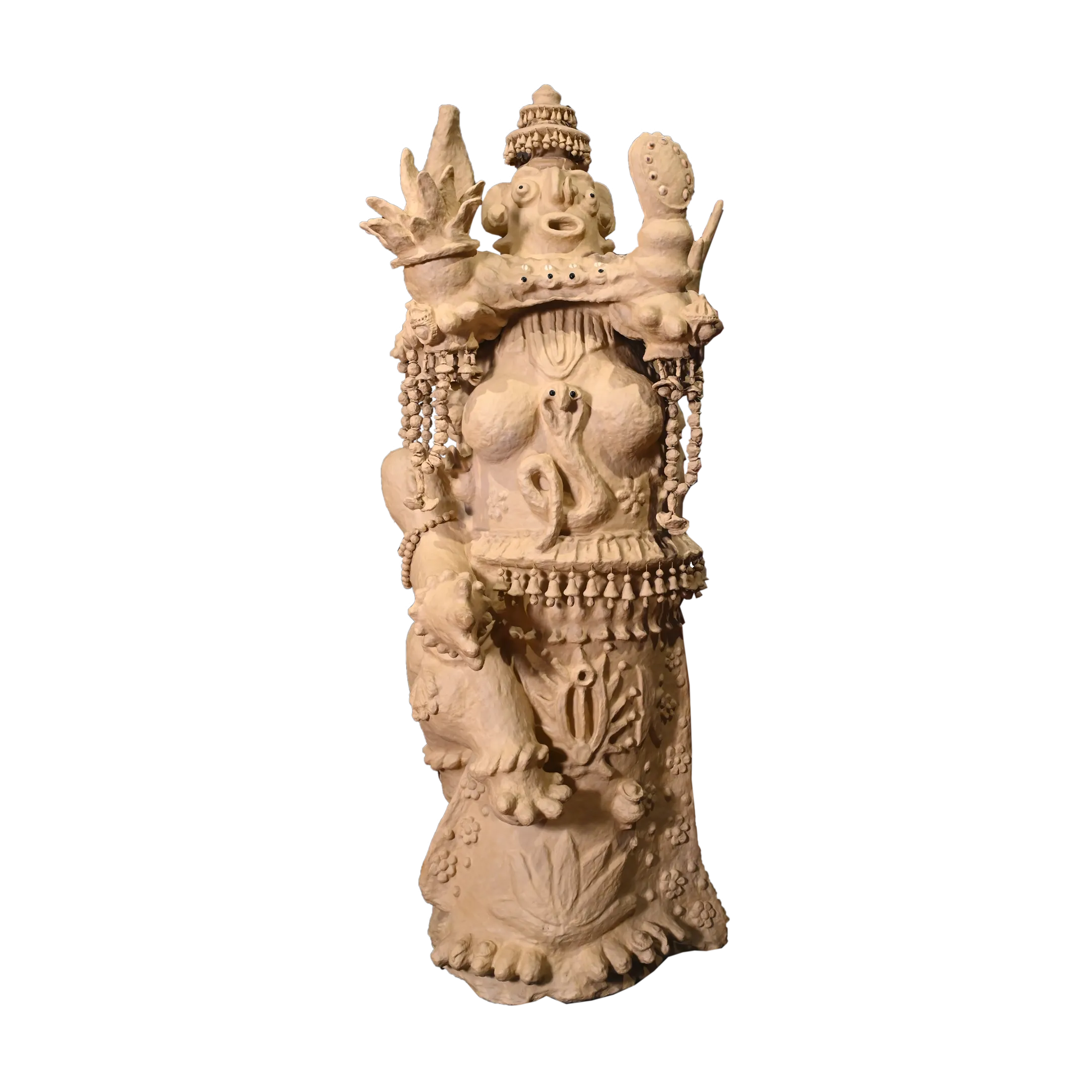 The concept of Adi Shakti emerged as early humans sought to personify the mysterious forces of nature. Archaeological finds in Harappa and Mohenjo-Daro verify the antiquity of these figurines, representing the Goddess as the creator, sustainer, and destroyer of the universe. An ancient craft of Bihar that repurposes discarded paper. The process involves- Soaking paper to create a pulp, Mixing the pulp with fenugreek seeds, adhesive, or Multani Mitti to create a moldable dough and finally after Sun-drying resulting in sculptures that are notably lightweight yet sturdy.Standing nearly 10 feet tall, this monumental sculpture portrays Adi Shakti as an eternal source of wisdom and consciousness. Sharad Kumar’s work captures a "divine grandeur," using a humble, recycled medium to evoke a powerful sense of spiritual presence and ancient history.